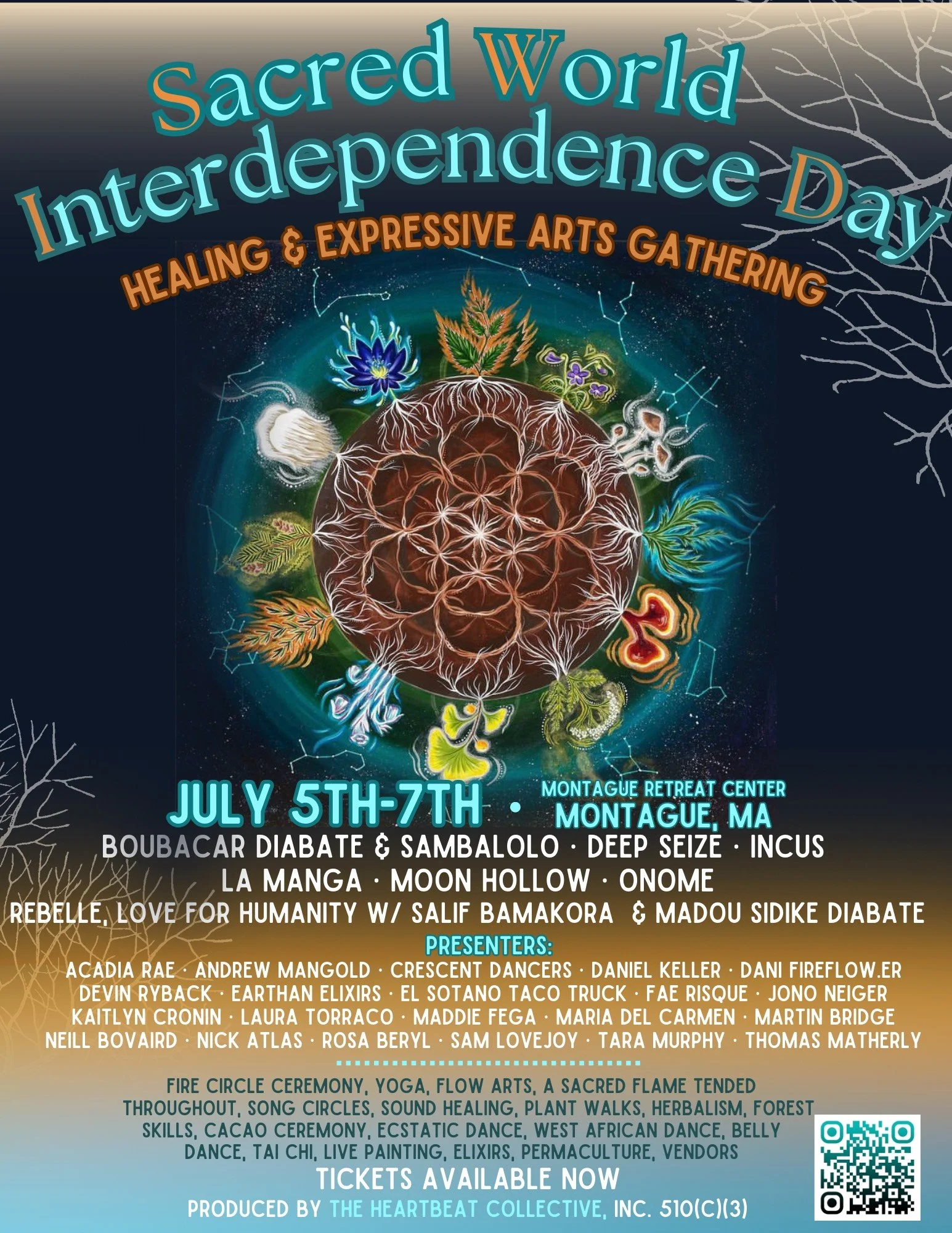 Ceremony, Live Music, Ecstatic Dance, Song Circles, Herbalism, Flow Arts, Belly Dancing, Yoga, Story Telling, Fire Circle, Live Painting, Vendors, Cacao Ceremony in the Hemlock Grove, West African Dance Class, Permaculture Action & a screening of Lovejoy's Nuclear War. Classes all weekend.